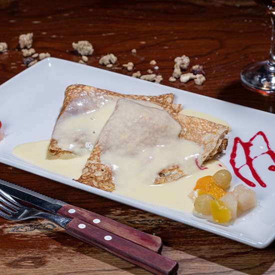 Clatite umplute cu branza si fructe in sos de vanilie 260g